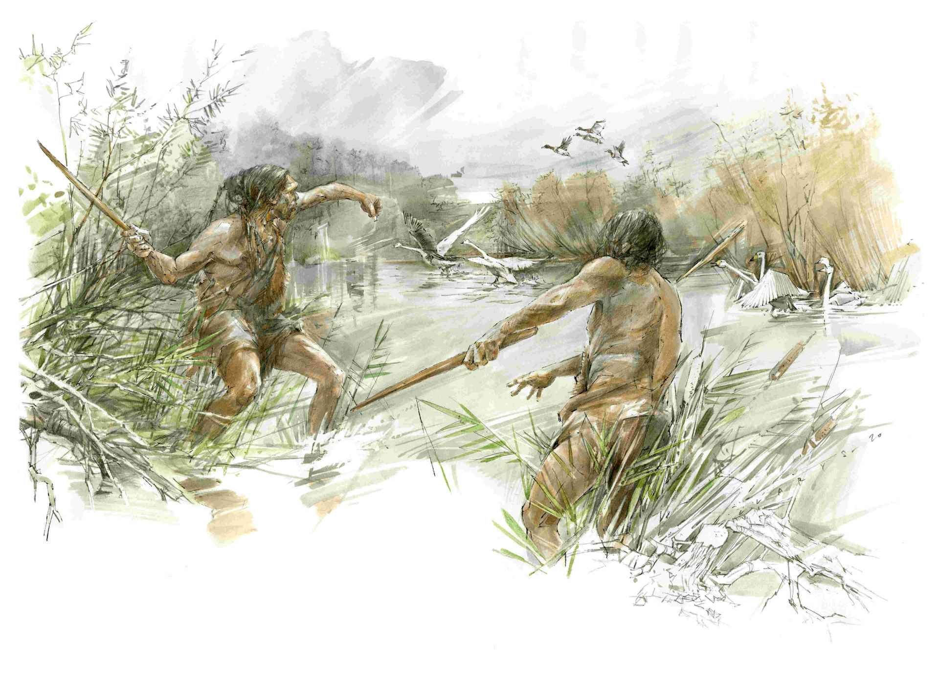 Eiszeitmenschen aus Schöningen setzten Holzwaffen bei der Jagd auf Wasservögel und Pferde ein.