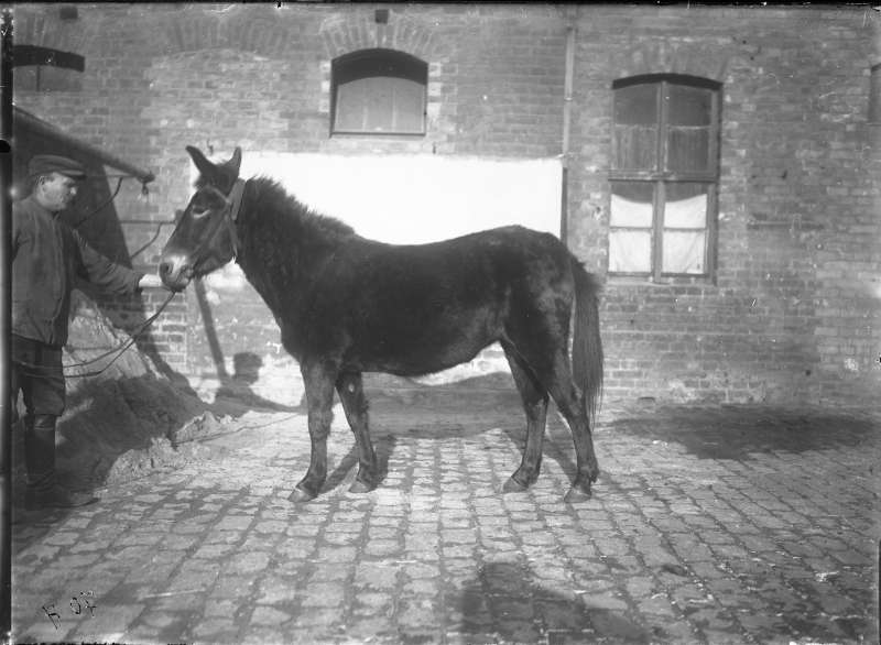 Historisches Foto eines Maultiers aus dem Museum für Haustierkunde, Halle. Maultier "Lotte", Geschlecht: weiblich, Geburtsdatum: 12.06.1903, Tag der Aufnahme: 23.01.1911 Museum für Haustierkunde, Zentralmagazin Naturwissenschaftlicher Sammlungen der Martin-Luther-Universität Halle Wittemberg