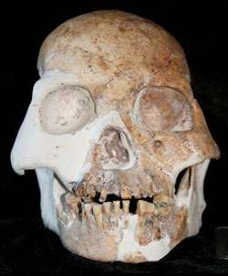 Schädel eines Angehörigen des "Rothirschvolkes". Forscher erkennen an dem Exemplar Merkmale, die man weder beim heutigen Homo sapiens noch bei archaischen Abstammungslinen des Menschen findet.