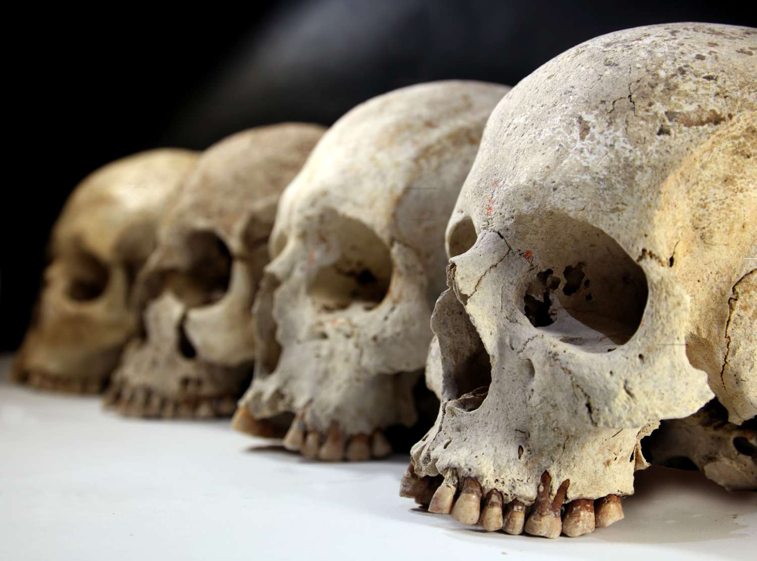 Schädel einer etruskischen Familie aus der Ausgrabungs-stätte Casenovole (Grosseto), die im Rahmen der Studie ana-lysiert wurden.