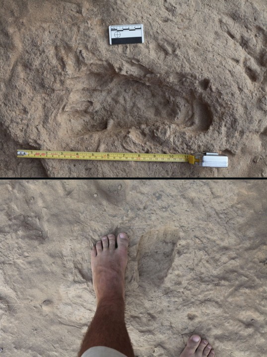 Bild unten: Der fossile Fußabdruck ist von dem einen modernen Menschen kaum zu unterscheiden