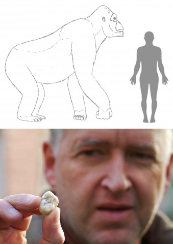 Bild unten: Backenzahn (Typusexemplar) von Giganthopithecus blacki.