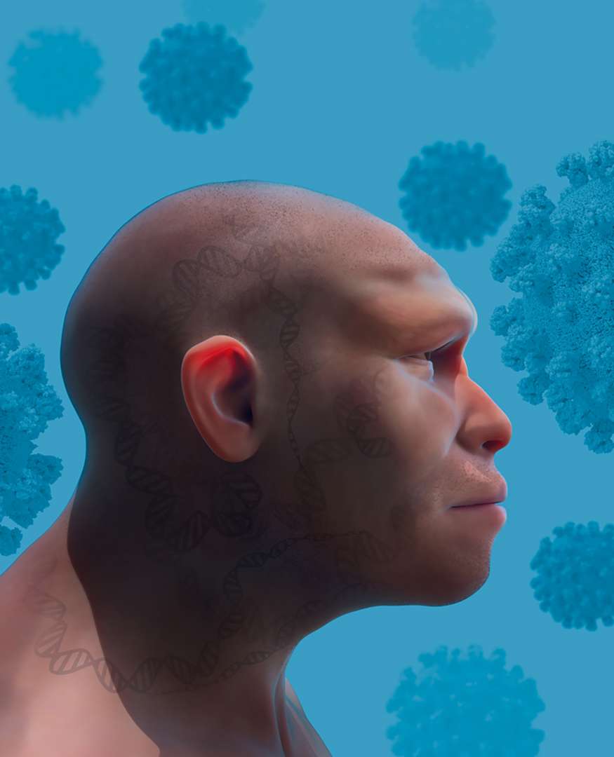 Genvarianten, die wir vom Neandertaler geerbt haben, können unser Risiko, bei einer Infektion mit SARS-CoV-2 schwer zu erkranken, sowohl erhöhen als auch verringern.