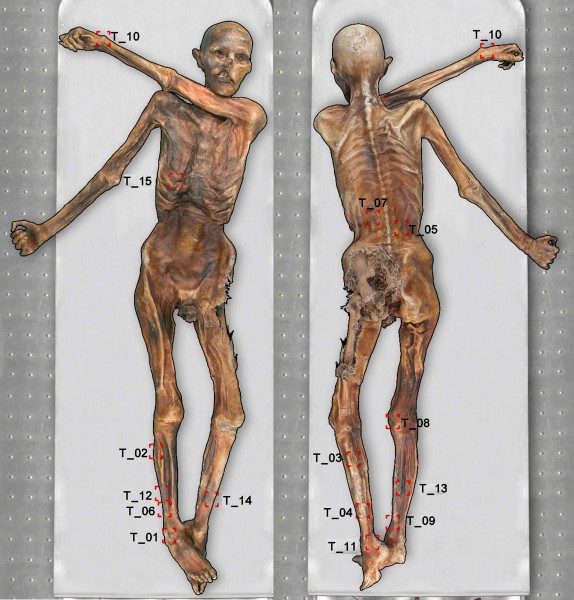 Kartierung aller Tätowierungen auf Ötzis Körper.