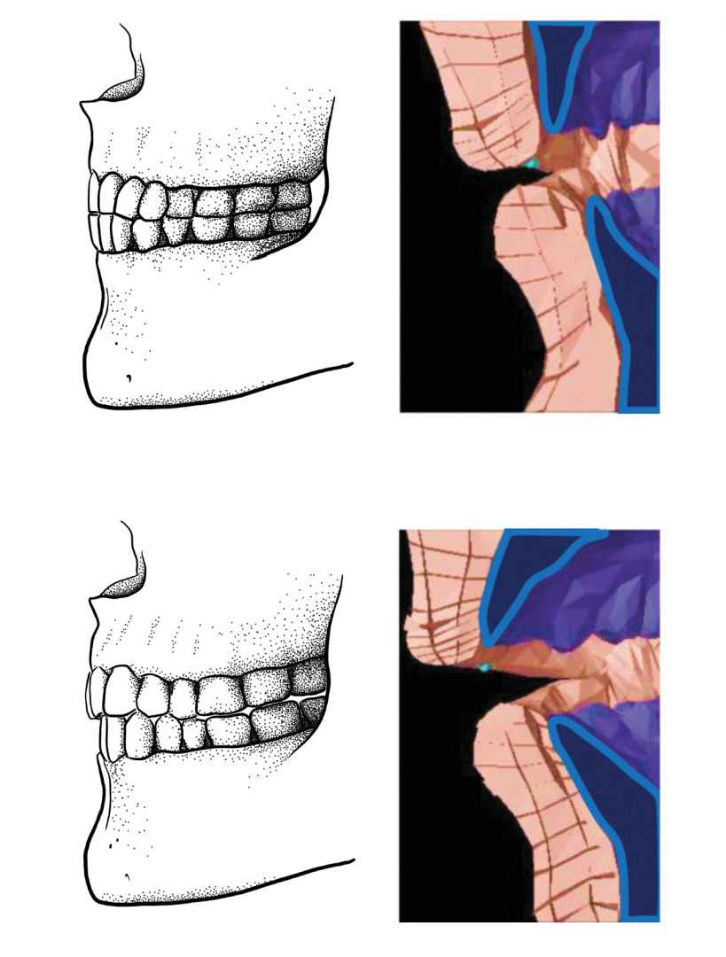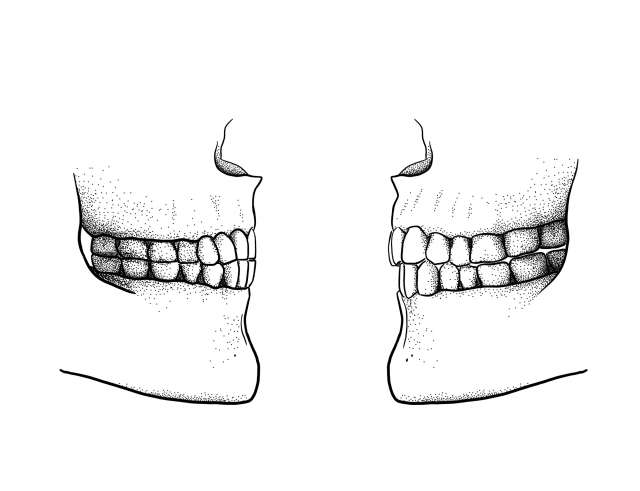 Aufgrund der härteren und zäheren Nahrung entwickelten frühere Menschen im Erwachsenenalter einen sogenannten Kopfbiss, bei dem die Schneidezähne des Ober- und Unterkiefers Kante auf Kante stossen. Mit der zunehmenden Verbreitung weicherer Nahrung setzte sich an seiner Stelle jedoch eine Gebissform durch, bei der die oberen Schneidezähne leicht über die unteren hinausragen. Dies ermöglichte die Bildung neuer Laute, die heute in der Hälfte aller Sprachen der Welt vorhanden sind: sogenannte Labiodentale, bei denen die oberen Schneidezähne die Unterlippe berühren, wie bei der Aussprache von «f».